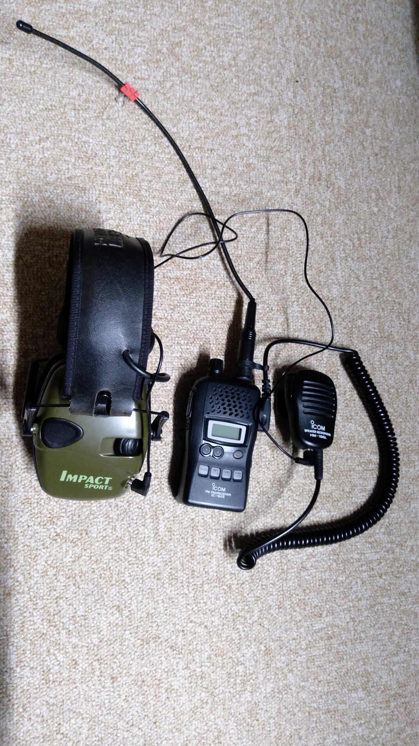 山の猟場では左耳に無線機のイヤホンをしていますが、右耳はそのままで猟場の音が聞こえるようにしていました。